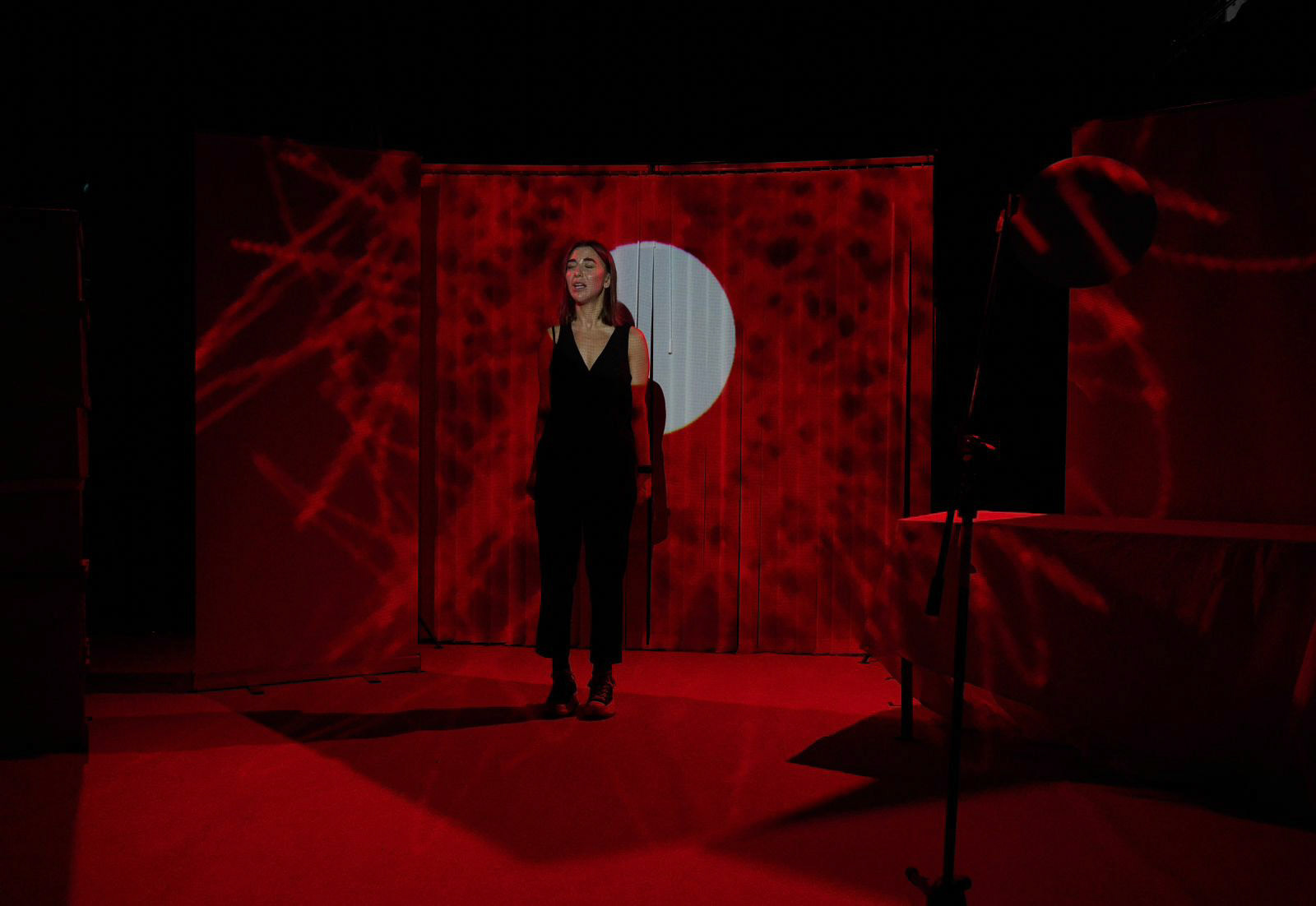 ITCH R&D - Komola Collective Director: Filiz Ozcan Writer: Elvin Aydogdu Producer: Pauline Nakirya Set & Costume Designer: Caitlin Abbott Lighting Designer/Projection Mapper: Nurul Wardani & Sammy Kissin Sound Designer: Jovana Backovic Dramaturg: Leesa Gazi Movement Coordinator: Kim Wright Stage Manager: Angeliki Poulima Actor: Natalie Ava-Nasir Marketing & Comms: Natasha Stone Venue: Redbridge Drama Centre Photographer: Derrick Kakembo
